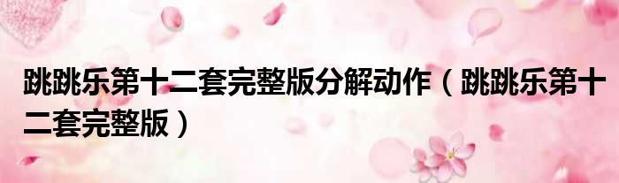 大家好,小东方来为大家解答以上的问题。跳跳乐第十二套完整版分解动作,跳跳乐第十二套完整版这个很多人还不知道,现在让我们一起来看看吧!