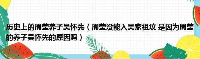 历史上的周莹养子吴怀先(周莹没能入吴家祖坟 是因为周莹的养子吴怀先的原因吗)