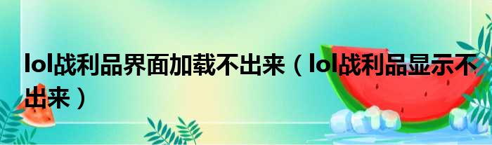 lol战利品界面加载不出来(lol战利品显示不出来)