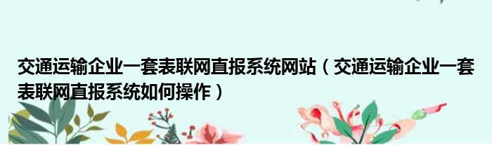 交通运输企业一套表联网直报系统网站(交通运输企业一套表联网直报系统如何操作)