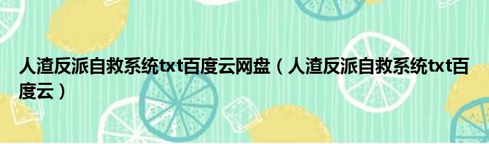 人渣反派自救系统txt百度云网盘(人渣反派自救系统txt百度云)