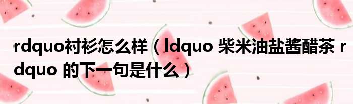 rdquo衬衫怎么样(ldquo 柴米油盐酱醋茶 rdquo 的下一句是什么)