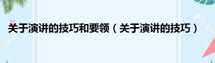 关于演讲的技巧和要领(关于演讲的技巧)