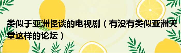 类似于亚洲怪谈的电视剧(有没有类似亚洲天堂这样的论坛)