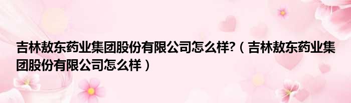 吉林敖东药业集团股份有限公司怎么样?(吉林敖东药业集团股份有限公司怎么样)