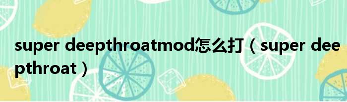 super deepthroatmod怎么打(super deepthroat)
