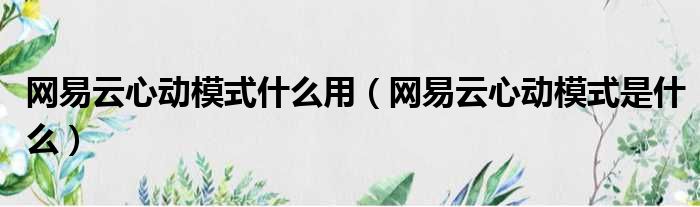 大家好,小东方来为大家解答以上的问题。网易云心动模式什么用,网易云心动模式是什么这个很多人还不知道,现在让我们一起来看看吧!
