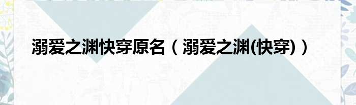 溺爱之渊快穿原名(溺爱之渊(快穿))