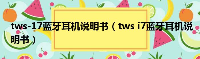 tws-17蓝牙耳机说明书(tws i7蓝牙耳机说明书)