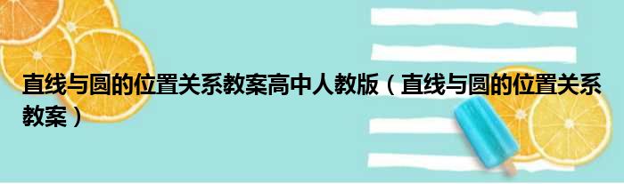 直线与圆的位置关系教案高中人教版(直线与圆的位置关系教案)
