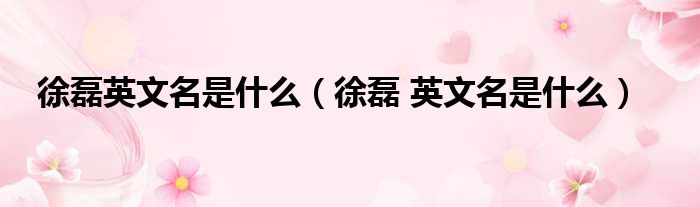 大家好,小东方来为大家解答以上的问题。徐磊英文名是什么,徐磊 英文名是什么这个很多人还不知道,现在让我们一起来看看吧!