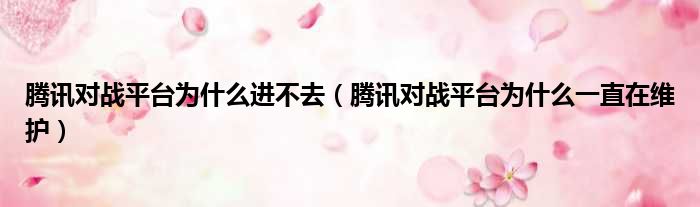 腾讯对战平台为什么进不去(腾讯对战平台为什么一直在维护)