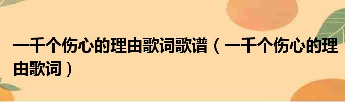 一千个伤心的理由歌词歌谱(一千个伤心的理由歌词)