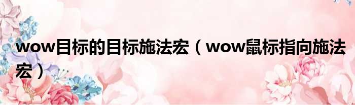 wow目标的目标施法宏(wow鼠标指向施法宏)
