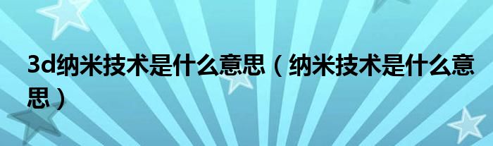 3d纳米技术是什么意思(纳米技术是什么意思)