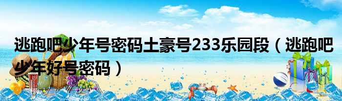 逃跑吧少年号密码土豪号233乐园段(逃跑吧少年好号密码)