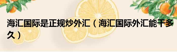 海汇国际是正规炒外汇(海汇国际外汇能干多久)