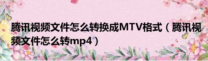 腾讯视频文件怎么转换成MTV格式(腾讯视频文件怎么转mp4)