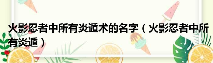 火影忍者中所有炎遁术的名字(火影忍者中所有炎遁)