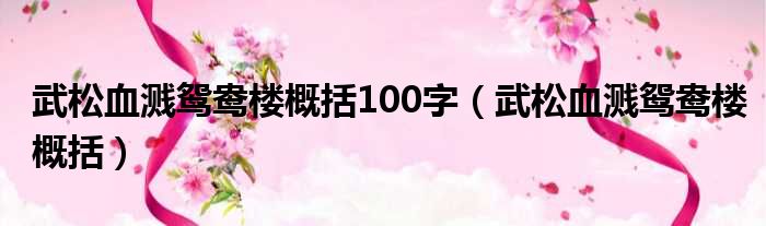 武松血溅鸳鸯楼概括100字(武松血溅鸳鸯楼概括)