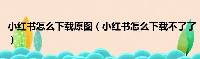 小红书怎么下载原图(小红书怎么下载不了了)