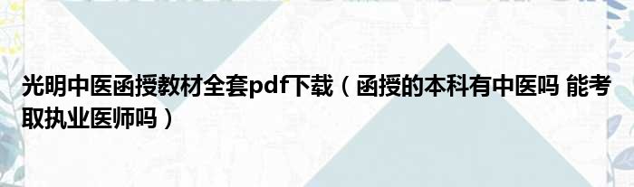 光明中医函授教材全套pdf下载(函授的本科有中医吗 能考取执业医师吗)
