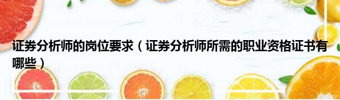 证券分析师的岗位要求(证券分析师所需的职业资格证书有哪些)