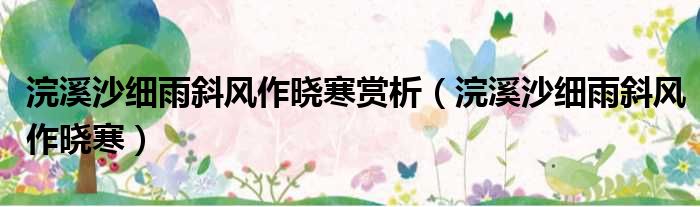 浣溪沙细雨斜风作晓寒赏析(浣溪沙细雨斜风作晓寒)
