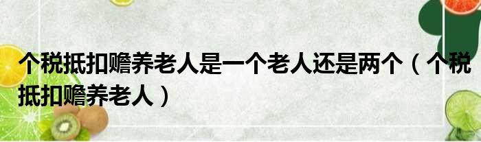 个税抵扣赡养老人是一个老人还是两个(个税抵扣赡养老人)
