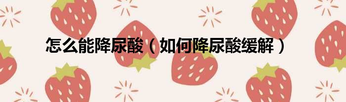 大家好,小东方来为大家解答以上的问题。怎么能降尿酸,如何降尿酸缓解这个很多人还不知道,现在让我们一起来看看吧!