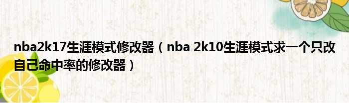 nba2k17生涯模式修改器(nba 2k10生涯模式求一个只改自己命中率的修改器)
