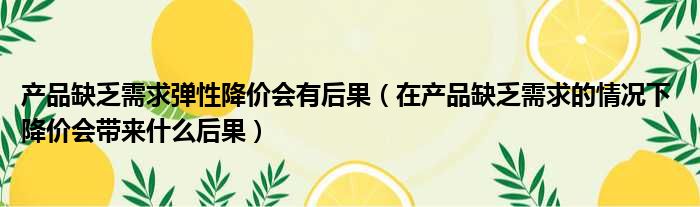 产品缺乏需求弹性降价会有后果(在产品缺乏需求的情况下 降价会带来什么后果)