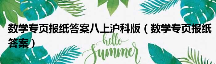 数学专页报纸答案八上沪科版(数学专页报纸答案)