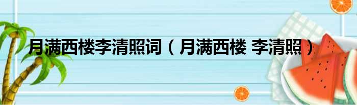 大家好,小东方来为大家解答以上的问题。月满西楼李清照词,月满西楼 李清照这个很多人还不知道,现在让我们一起来看看吧!