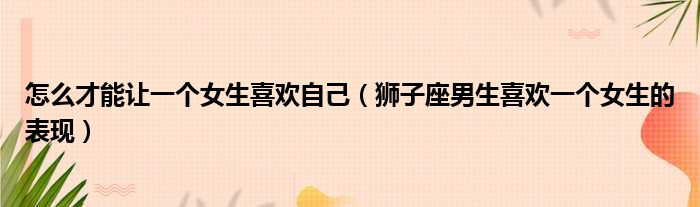 怎么才能让一个女生喜欢自己(狮子座男生喜欢一个女生的表现)