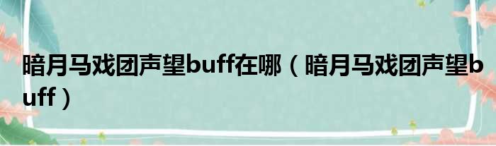 暗月马戏团声望buff在哪(暗月马戏团声望buff)