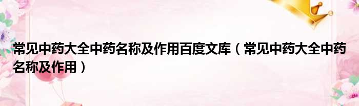 常见中药大全中药名称及作用百度文库(常见中药大全中药名称及作用)