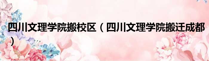 四川文理学院搬校区(四川文理学院搬迁成都)