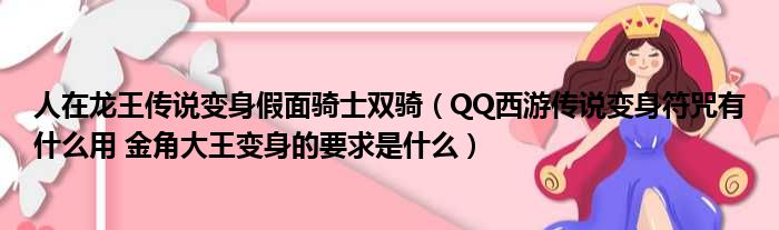 人在龙王传说变身假面骑士双骑(QQ西游传说变身符咒有什么用 金角大王变身的要求是什么)
