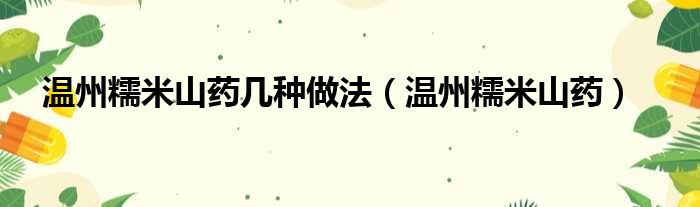 大家好,小东方来为大家解答以上的问题。温州糯米山药几种做法,温州糯米山药这个很多人还不知道,现在让我们一起来看看吧!