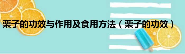 栗子的功效与作用及食用方法(栗子的功效)