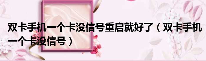 双卡手机一个卡没信号重启就好了(双卡手机一个卡没信号)
