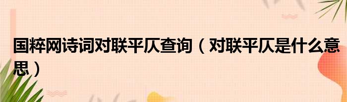 国粹网诗词对联平仄查询(对联平仄是什么意思)