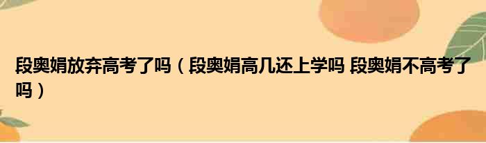 大家好,小东方来为大家解答以上的问题。段奥娟放弃高考了吗,段奥娟高几还上学吗 段奥娟不高考了吗这个很多人还不知道,现在让我们一起来看看吧!