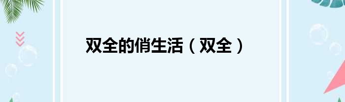 大家好,小东方来为大家解答以上的问题。双全的俏生活,双全这个很多人还不知道,现在让我们一起来看看吧!