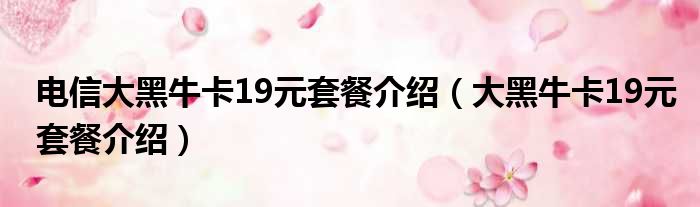 电信大黑牛卡19元套餐介绍(大黑牛卡19元套餐介绍)