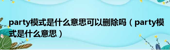 party模式是什么意思可以删除吗(party模式是什么意思)