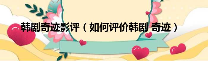 韩剧奇迹影评(如何评价韩剧 奇迹)