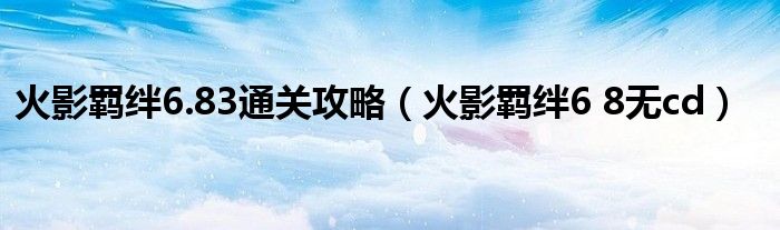 火影羁绊6.83通关攻略(火影羁绊6 8无cd)