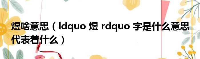 煜啥意思(ldquo 煜 rdquo 字是什么意思 代表着什么)